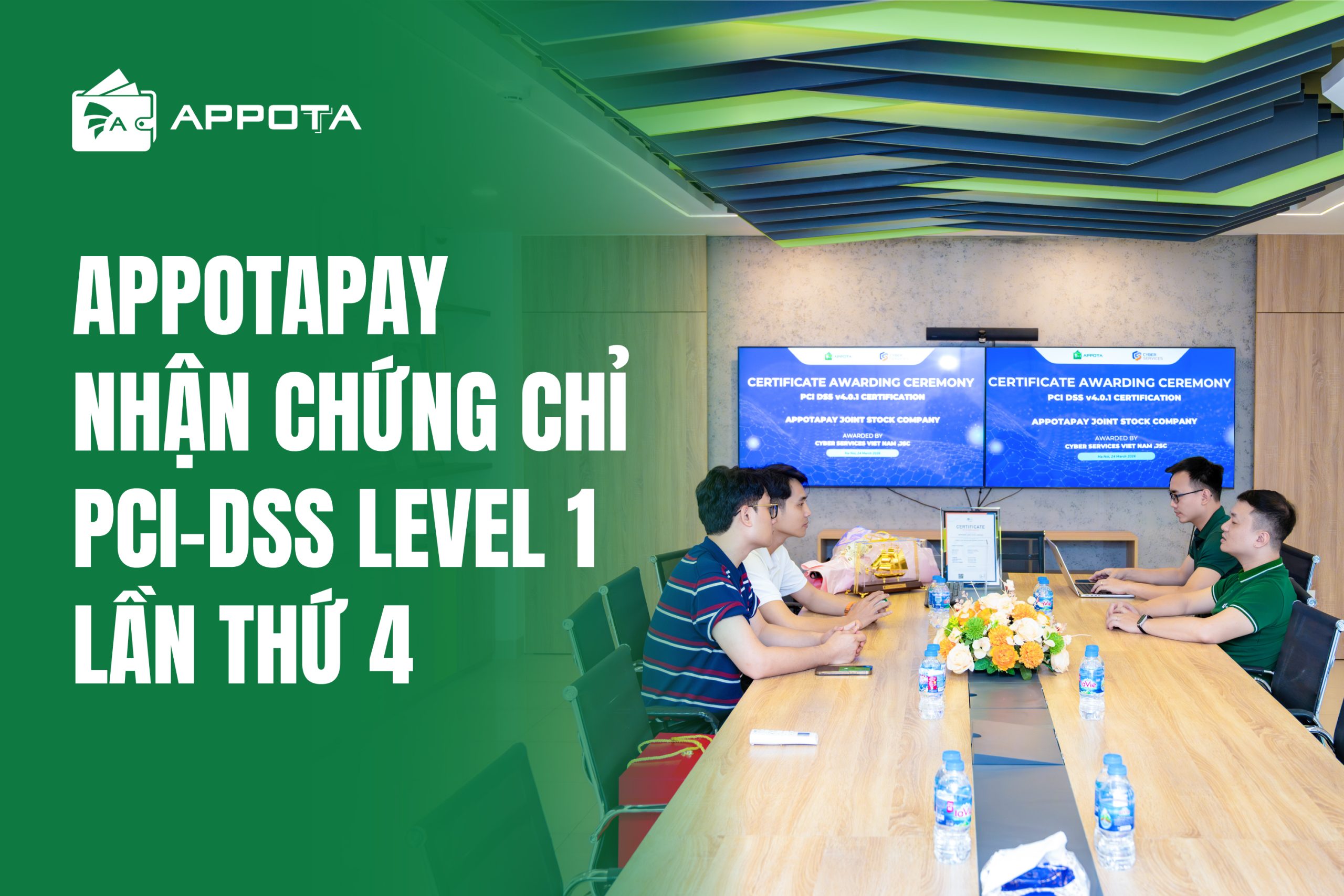 Ngày 24/03, tại Hà Nội – Công ty Cổ phần AppotaPay đã chính thức được Cyber Services – đơn vị tư vấn an ninh thông tin và tuân thủ – trao tặng chứng chỉ Bảo mật Quốc tế PCI DSS Level 1 (v4.0.1). Đây là năm thứ 4 liên tiếp doanh nghiệp này bảo vệ thành công cấp độ bảo mật cao nhất dành cho các tổ chức xử lý, truyền tải và lưu trữ dữ liệu thẻ thanh toán toàn cầu.